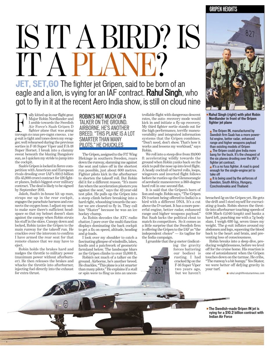 3 thoughts on “Hindustan Times Correspondent Flies The Gripen”