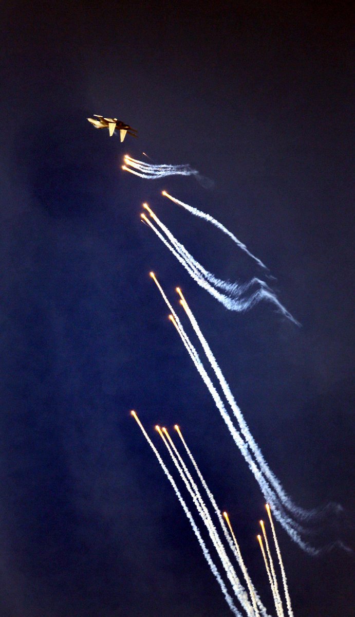 These staged airpower displays are of very limited tactical training value, despite all the ammo and fuel expended – all they serve is to keep a bunch of VIPs (civil and military) entertained for an evening…for instance in actual combat, no formation would fly that close together – but it makes for a lot of pretty pictures….so the tamasha continues !
