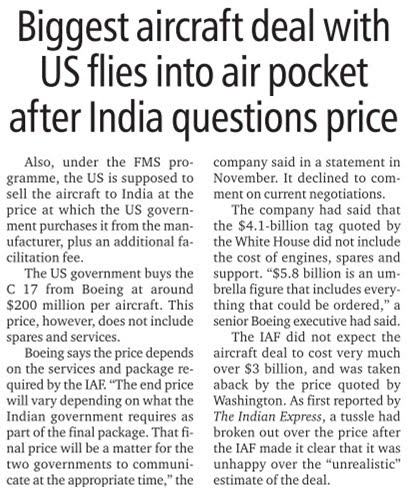 On the issues of price, don't blame the Americans. They stated the price up front, it's not like it was hidden somewhere. If MOD thought the price was high, they should have either negotiated or walked away. Any thing American, and the Indian press will jump all over it. The problem is with our babus…. it was their job to negotiate, if they do not know how to negotiate a fair price, it's not the fault of the seller. The seller can ask for anything they want, it's the buyer's job to decide what they want to pay for it and stick to that.