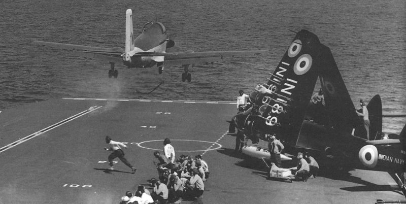 INAS 310 was commissioned on 21 Mar 1961 in Heyres, France by Lt Cdr Mihir K Roy (later Vice Admiral). A unique privilege as the commissioning was on a French Aircraft carrier ‘Arromanches’, unusual as the squadron was ultimately to operate from INS Vikrant being acquired from the UK. The COBRAs proudly operated the Alizes from INS Vikrant for the next twenty six years ie till 10 May 1987. The Alizes saw action during the 1971 Indo-Pak war when the squadron’s aircraft flew extensively, remarkably, even by night. The squadron earned six Vir Chakras, six Nao Sena Medals and three mention-in-Despatches for these operations. Most notable amongst those present today were Vice Adm M K Roy, the commissioning Commanding Officer and Cmde RAJ Anderson, the pilot who carried out the first landing of the Alize on INS Vikrant.
