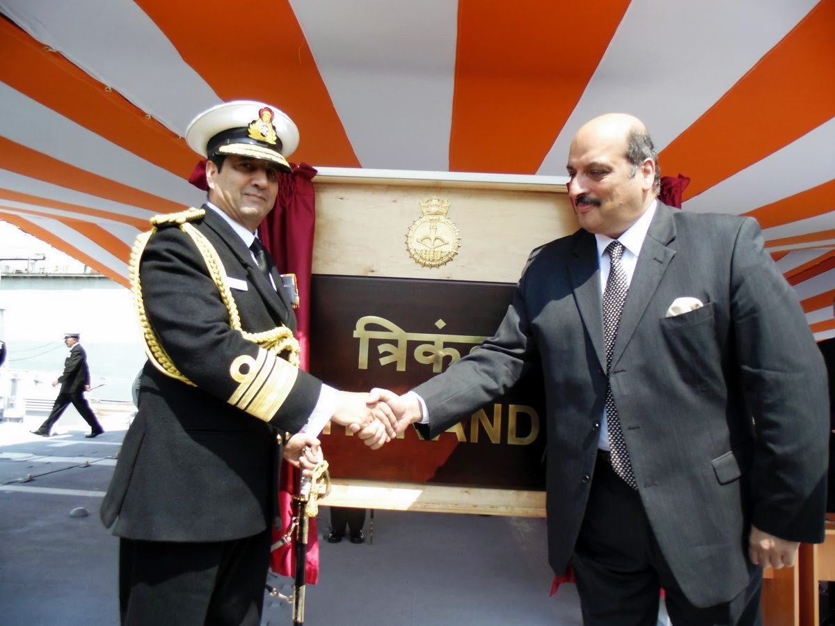 The commissioning of INS Trikand marks the culmination of a three ship contract for “Follow On Talwar Class” ships built in Russia, and is therefore a milestone in the Indo-Russian military-technological cooperation. Her sister ships INS Teg and INS Tarkash were commissioned last year and are now undertaking operations as part of the Western Fleet. The keel of INS Trikand was laid on 11 June 2008 and the ship was launched on 25 May 2011. Extensive Acceptance trials were conducted in the Baltic Sea in April and May 2013.